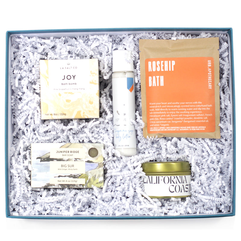 This California Spa experience includes everything you need to relax and be pampered. From luxurious body lotion and bath bombs to ultra lathering soaps - everything you'll find here is high quality and 100% made in California.
