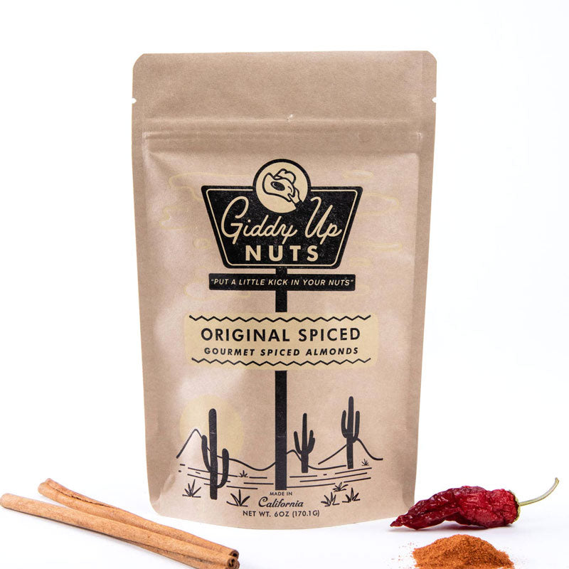 Giddy Up Nuts utilizes California almonds and fresh, all-natural ingredients to dream up flavor combinations that are in sync with what is in-season and abundant at the local farmer's markets. These Original Spiced almonds are a little bit sweet and a little bit spicy and totally tasty.